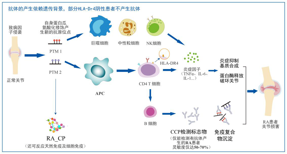 但是,在臨床實(shí)踐過程中發(fā)現(xiàn)CCP和RF都不能有效地篩查出陽性的RA患者,國際指南推薦的CCP雖有良好的特異性,但約有30-40%的RA患者不能被檢出,現(xiàn)有的臨床檢測項(xiàng)目指標(biāo)的靈敏度不夠,假陰性率很高,導(dǎo)致臨床漏診,貽誤病情。