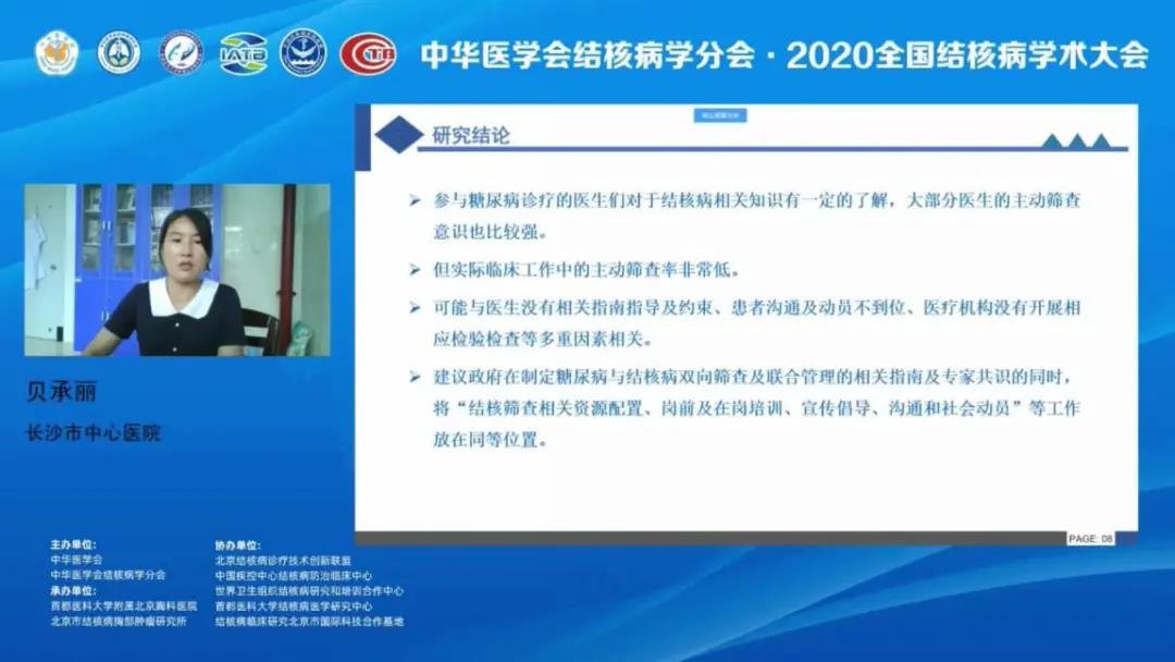 長沙市中心醫(yī)院貝承麗就如何在糖尿病患者中篩查結(jié)核病的專題作了報告,她指出,肺結(jié)核和糖尿病均是發(fā)病率高,嚴(yán)重威脅人類健康及生命的全球性疾病。2019年1月,WHO提出了雙向篩查的必要性,但目前在我國國情下如何進(jìn)行雙向篩查仍存在問題,應(yīng)基于國情下制定初步防治活動計劃。